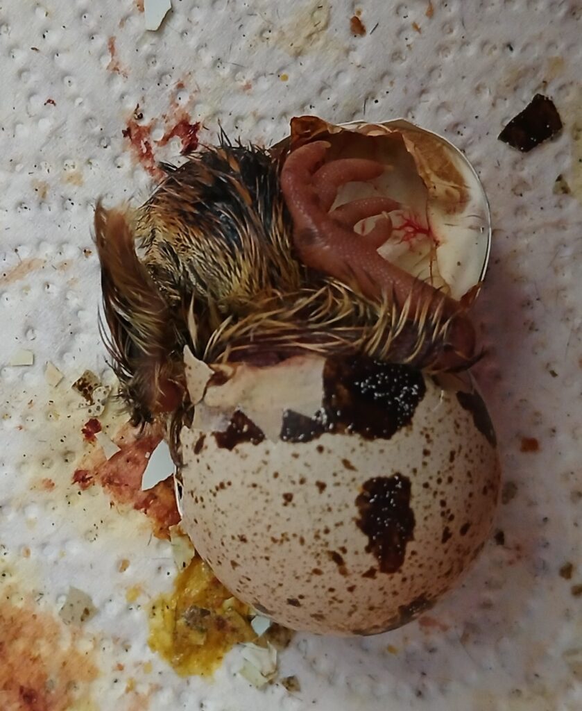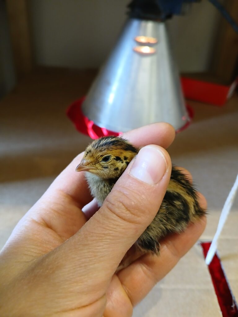 Justament in der Osternacht sind unsere Wachtelküken geschlüpft, waren bis jetzt immer gut behütet unter der Wärmelampe und durften heute schon zum ersten Mal in die Wiese, was ihnen sichtlich gut gefiel.